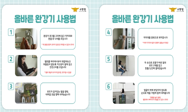 강기원 소방서장은 “완강기는 계단을 통한 대피가 불가능할 경우 사용할 수 있는 피난기구로, 정확한 사용법을 숙지하는 것이 중요하다”라며 “만일의 상황을 대비하여 완강기 사용법을 반드시 알아두시기 바란다”라고 전했다.
