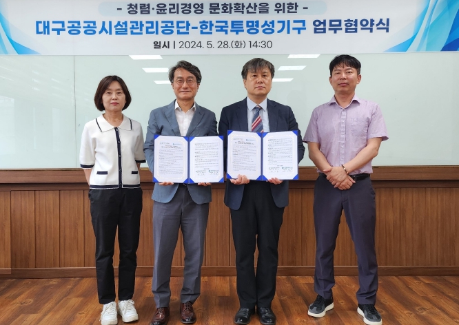 [뉴스서울] 대구공공시설관리공단이 5월 28일 서부사업소에서 (사)한국투명성기구와 청렴·윤리경영 문화 확산을 위한 업무협약을 체결했다.