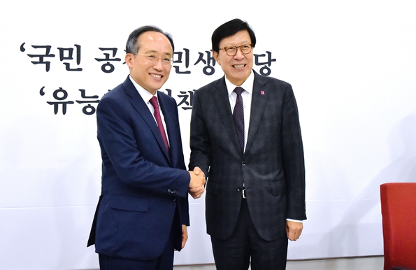 특히, 박 시장은 부산 최대 현안인 '부산 글로벌허브도시 조성에 관한 특별법'의 연내 통과를 위해 양당이 협조해 줄 것을 거듭 당부하며, '부산 글로벌허브도시 조성에 관한 특별법', '한국산업은행법' 개정 등을 통해 부산이 국가균형발전의 중심축 역할을 할 수 있도록 도와줄 것을 요청했다.