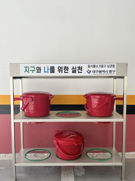 ▲ 대구 중구, 음식물류 폐기물 수거용기 전용선반 설치 완료 |
