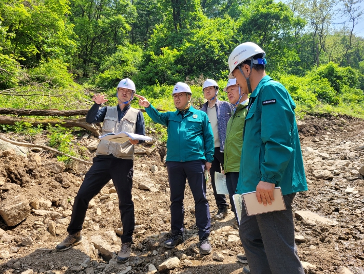 [뉴스서울] 북부지방산림청은 사업장 안전관리 실태와 사업 품질 점검을 위해 5월 10일 경기도 광주시 일원 산림토목사업장에서 안전 장구 착용, 안전 수칙 준수 여부 등 현장의 안전관리 내용을 점검하고 사방댐 설치 공사 진행 상황을 확인했다.