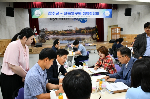 [뉴스서울] 장수군과 전북연구원은 28일 군청 군민회관에서 정책간담회를 열고 전북자치도 주요 특례 사업을 위한 논의에 머리를 맞댔다.