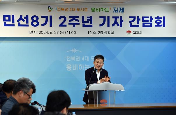 김제시에 따르면 27일 오전 2층 상황실에서 민선8기 2주년 성과와 향후 2년의 비전 기자 간담회를 실시했다.