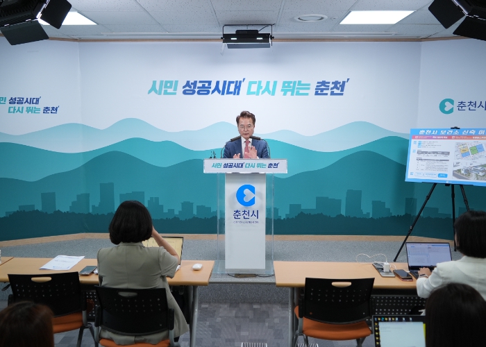 춘천시에 따르면 16일 오전 11시 춘천시청 브리핑룸에서 민선 8기 2주년 연계 보건소 신축과 공공의료의 중요성에 대한 기자회견이 열렸다.