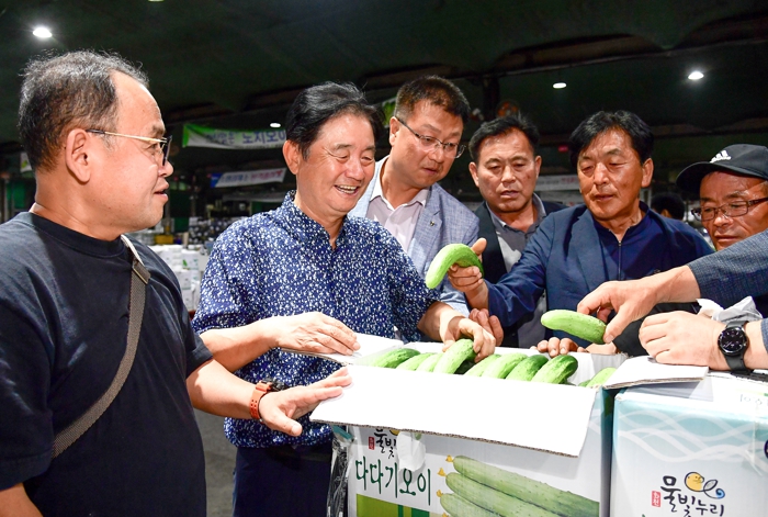 최 군수는 지난 2014년 초선 취임 이후 3선 군수가 된 지금까지, 10년째 여름철 애호박 집중 출하시기에 맞춰 가락동 현장 세일즈를 이어오고 있다.
