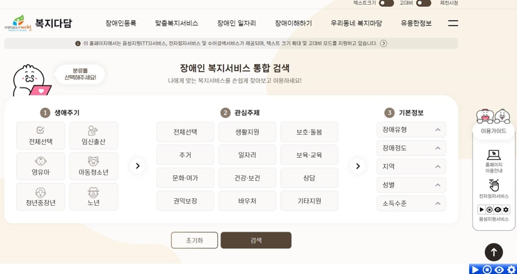 다양한 복지서비스를 ‘장애인 복지서비스 통합검색’ 프로그램을 통해 체계적으로 일원화하고 장애 유형, 생애주기 및 관심사에 따라 맞춤형 정보를 제공해 이용자들이 필요로 하는 정보를 한눈에 쉽게 얻을 수 있도록 제작했다.