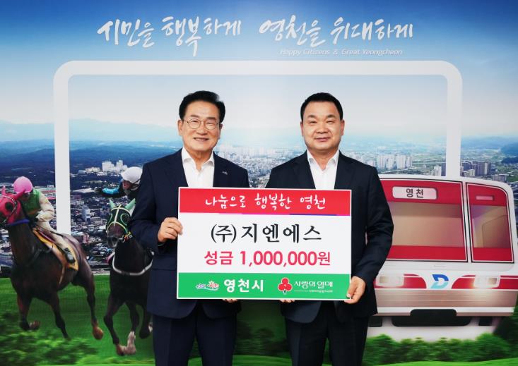 ▲ 영천시 정우하이텍㈜·㈜지엔에스, 영천시에 이웃돕기 성금 기탁 |