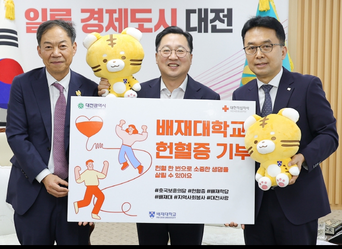 이장우 시장은 “대전시민을 위해 따뜻한 선행을 베풀어 준 배재대학교 학생 및 관계 직원분들께 감사드린다”라며 “헌혈증이 어려운 이웃들에게 한 줄기 빛과 희망이 될 수 있도록 소중히 쓰겠다”라고 말했다.