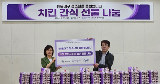 이날 ㈜참바른 부어치킨(대표이사 박창훈)은 해운대구 청소년들을 위한 300만원 상당의 치킨 200세트 및 놀이물품을 해운대청소년문화의집에 전달했다.