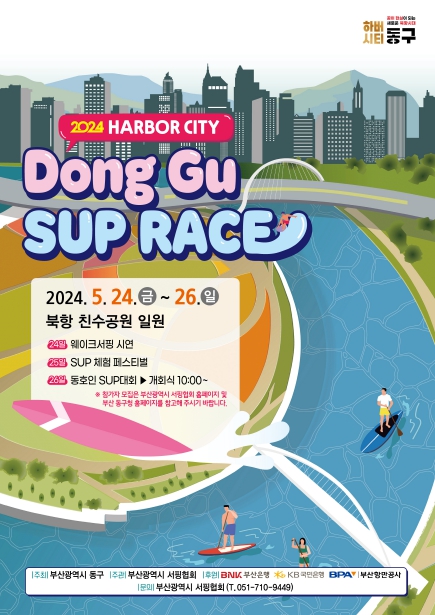 [뉴스서울] 부산 동구는 다가오는 5월 24일부터 26일까지 3일간 북항 친수 공원 경관 수로에서 “2024 하버시티 동구 북항컵 SUP RACE”를 개최한다.