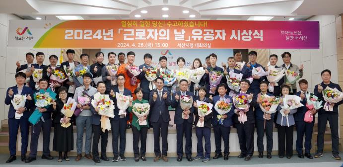 [뉴스서울] 충남 서산시는 26일 시청 대회의실에서 2024년 근로자의 날 유공자 시상식을 개최했다고 밝혔다.
