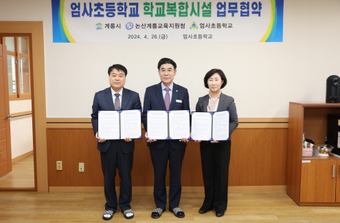 [뉴스서울] 계룡시는 26일 엄사초등학교에서 논산계룡교육지원청, 엄사초등학교와 학교복합시설 사업 추진을 위한 업무협약을 체결했다.