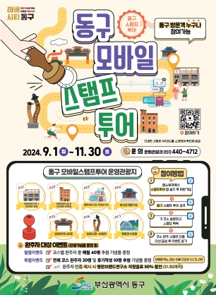 [뉴스서울] 부산 동구는 관내 대표 관광지를 투어하며 즐길 수 있는 모바일 스탬프 투어를 9월 1일부터 11월 30일까지 운영한다고 밝혔다.