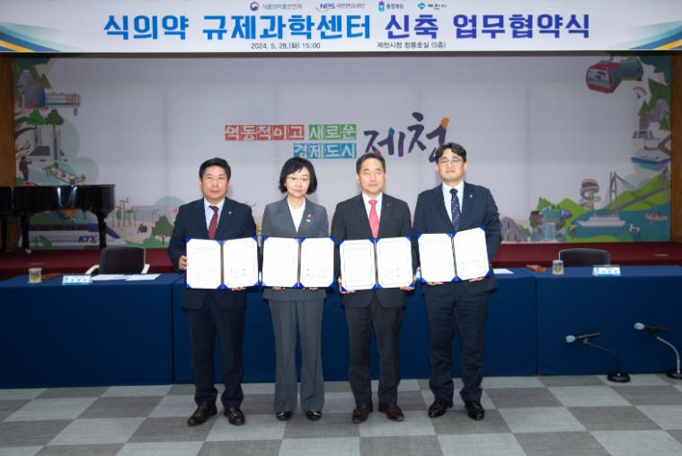 [뉴스서울] 충북 제천시가 식품의약품안전처의 전문 교육기관인 식의약 규제과학센터 유치에 성공하여 28일 김창규 제천시장과 오유경 식약처장, 김태현 국민연금공단 이사장, 김명규 충청북도 경제부지사 등이 참석한 가운데 업무협약을 체결했다고 밝혔다.