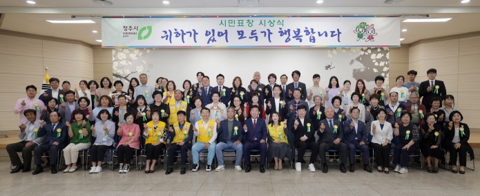 이날 시상식에서는 외국인주민 정착지원 유공 1명, 모범시민 24명, 장기근속 이통장 9명, 이달의 자원봉사왕 3명, 적십자봉사원 3명, 벚꽃개화기 무심천 안전관리 유공 6명, 청주생활 체험수기 공모전 7명, 문화유산 시민아이디어 공모전 5명, 취약계층 아동 지원 유공 8명, 아동복지 유공 5명에게 각각 표창패, 감사패 등을 수여했다.