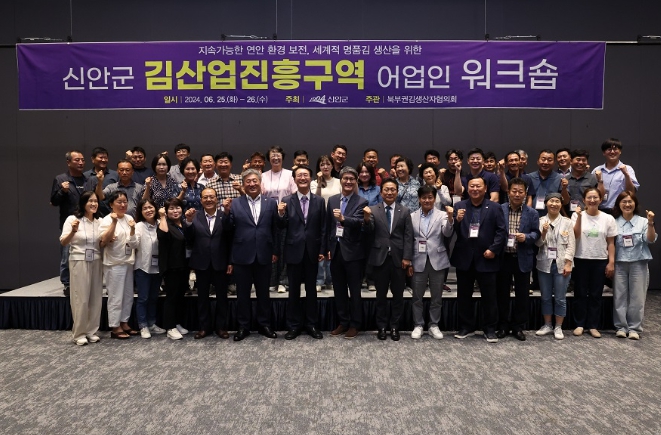 [뉴스서울] 신안군은 김산업 진흥구역으로 지정된 지도읍, 임자면 김양식 어업인 약 40명을 대상으로 6월 25일부터 26일까지 1박 2일간 자은면 라마다·씨원리조트에서 김양식 어업인 친환경 워크숍을 개최했다.