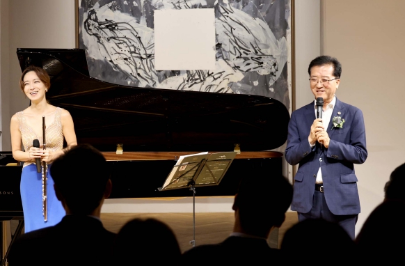 [뉴스서울] 대전시의회 조원휘 의장은 지난 14일 동구 인동 헤레디움에서 대전0시축제의 일환으로 개최된 ‘최나경 갤러리 콘서트’에 참석해 최나경 플루티스트를 비롯한 예술공연팀 ‘카바티나 클래식’과 인사를 나누고, 대전문화재단 백춘희 대표이사 등 관계자들을 격려했다.