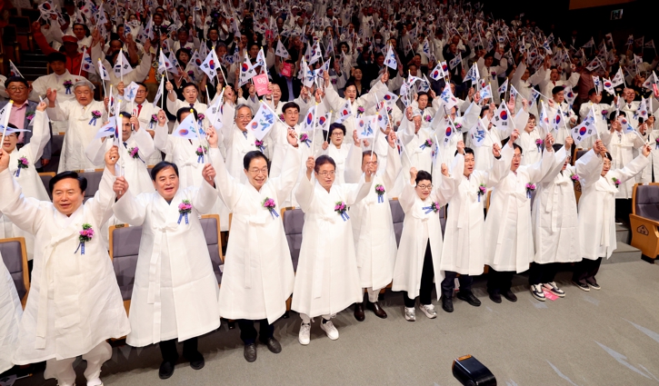 이철우 도지사는 지난 삼일절 기념식에 이어 도청 간부공무원들과 함께 경축식 무대에 올라가 애국가를 4절까지 완창해 독립유공자에 대한 감사와 나라 사랑을 표현했다.