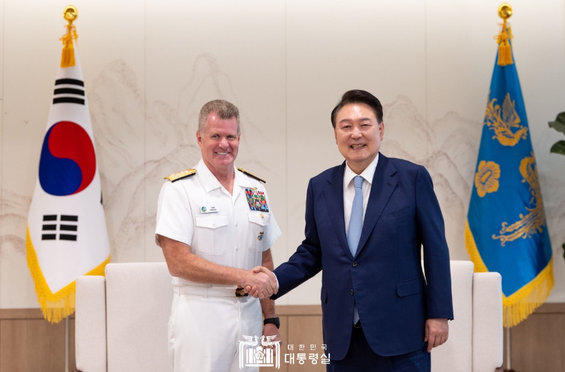 ▲ 5월 30일 윤석열 대통령은 용산 대통령실에서 사무엘 파파로(Samuel Paparo) 신임 美 인도 태평양사령관을 접견하고, 사령관 취임을 축하하며 연합방위태세 강화를 위해 힘써줄 것을 당부했다. |