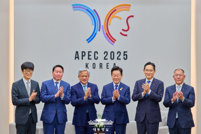 [뉴스서울] 이재명 대통령은 10월 31일 오후 2시 경주 APEC 정상회의를 계기로 방한한 젠슨 황 엔비디아 대표를 만나, 대한민국 AI 인프라를 비롯한 생태계 전반의 혁신 방안에 대해 의견을 교환했다. 이 자리에는 삼성전자 이재용 회장, SK 최태원 회장, 현대차그룹 정의선 회장, 네이버 이해진 의장이 함께했다.