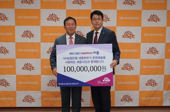 [뉴스서울] NH농협은행 세종본부는 17일 세종시청 세종실에서 세종시문화관광재단에 후원금 1억 원을 전달했다.