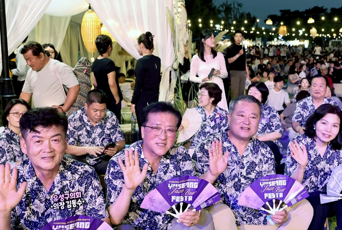 [뉴스서울] 대전시의회 조원휘 의장은 지난 23일 유림공원에서 개최된 ‘2024 유성 재즈&맥주 페스타 개막식’행사에 대전시의회 송대윤 부의장, 이금선 교육위원장과 함께 참석해 정용래 유성구청장을 비롯한 내빈들과 인사를 나누고 축제 개막을 축하했다.