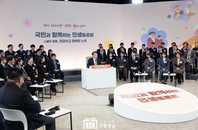 [뉴스서울] 윤석열 대통령은 3월 21일 강원특별자치도 원주시 건강보험심사평가원에서 ‘건강하고 행복한 노후’를 주제로 스물두 번째 '국민과 함께하는 민생토론'를 개최했다. 이번 토론회는 주거, 식사, 의료, 돌봄 등 어르신의 삶과 밀접한 정책 과제를 논의하기 위해 마련됐다.