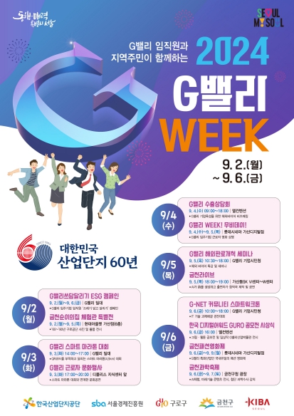 구는 ‘G밸리 위크’ 기간 동안 산업단지 60주년을 맞아 외부기관과 연계한 산업행사와 지역사회 화합을 위한 다양한 문화행사를 준비했다.