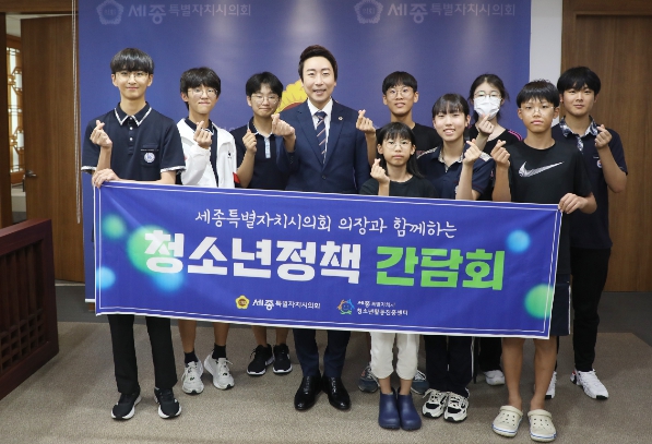 [뉴스서울] 세종특별자치시의회 임채성 의장이 22일 청소년정책제안대회 입상자와 청소년참여위원을 만나 청소년정책에 대해 자유롭게 의견을 나눴다.