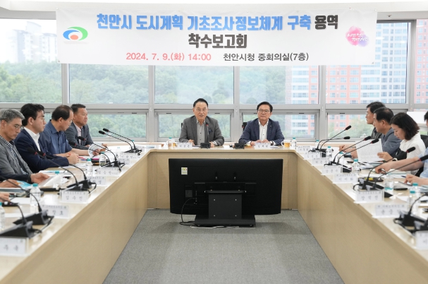 시는 9일 시청 중회의실에서 박상돈 천안시장을 비롯해 도시계획 관련 부서장과 전문가, 용역사가 참석한 가운데 ‘천안시 도시계획 기초조사 정보체계 구축 용역 착수보고회’를 개최했다.