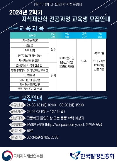 ▲ 2024년 2학기 지식재산학 학점은행제 교육생 모집 포스터 |