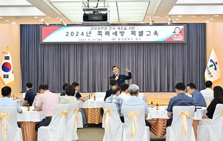 [뉴스서울] 울산 중구가 8월 23일 오후 4시 중구청 대회의실에서 2024년 간부공무원 폭력 예방 특별 교육을 실시했다.