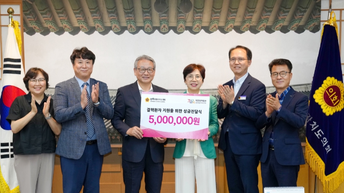 [뉴스서울] 전북특별자치도의회는 17일, 결핵퇴치를 위한 복약확인 및 독려, 생필품 지원 등에 써달라며 대한결핵협회 전북지부에 성금 5백만원을 전달했다.