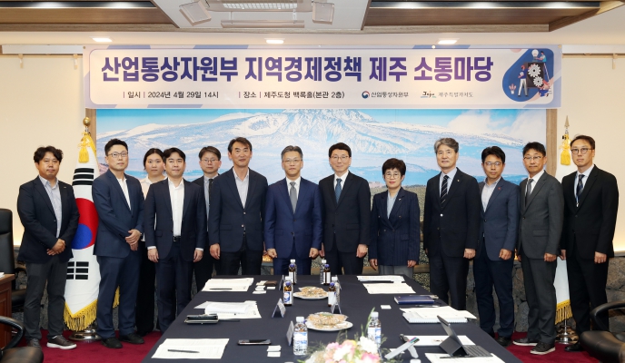 [뉴스서울] 제주특별자치도와 산업통상자원부가 29일 오후 도 본청 2층 백록홀에서 ‘지역경제정책 제주 소통마당’을 개최하고 제주 경제 대전환을 위한 방안을 모색했다.