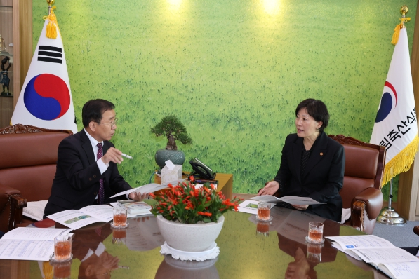 ▲ 김문근 단양군수, 송미령 농식품부장관에게 지역 현안 건의 |