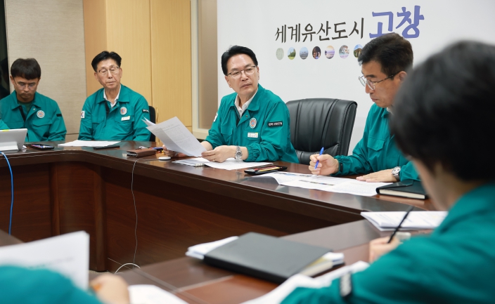 고창군은 20일 오후 5시30분 재난안전상황실에서 심덕섭 고창군수 주재로 안전총괄과와 산림공원과, 건설도시과, 해안수산과 등 협업 부서장 등이 참석한 가운데 태풍 대응 비상대책회의를 개최했다.