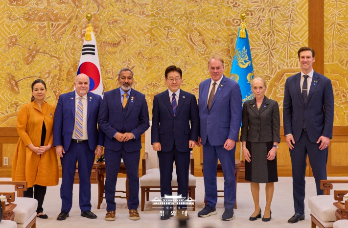 [뉴스서울] 이재명 대통령은 3월 31일 오후 청와대에서 아미 베라(Ami Bera) 하원 동아태소위원회 간사 등 공화·민주 양당 의원으로 구성된 미국 의회 코리아스터디그룹 대표단을 접견하고 최근 중동 전쟁, 한미관계, 한반도 문제 등에 대해 의견을 나눴다.