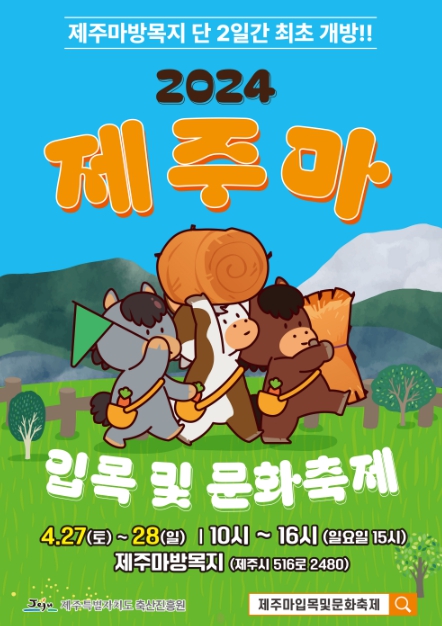 [뉴스서울] 제주의 푸르른 자연 속에서 천연기념물 제주마와 함께하는 ‘2024년 제1회 제주마 입목 및 문화축제’가 27~28일 이틀간 516도로변 제주마방목지에서 펼쳐진다.
