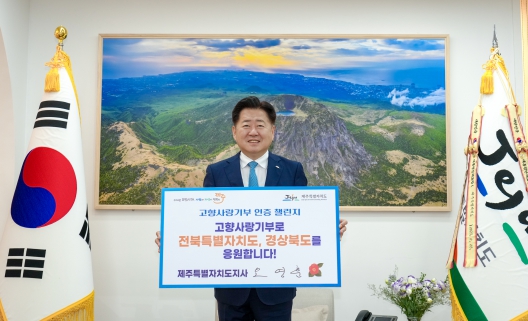 오영훈 지사는 “전북과 경북지역이 호우 피해로 어려움을 겪고 있는데, 더 이상의 피해 없이 하루빨리 일상으로 복귀할 수 있길 바란다”며 “고향사랑기부로 두 지역을 응원한다”고 말했다.