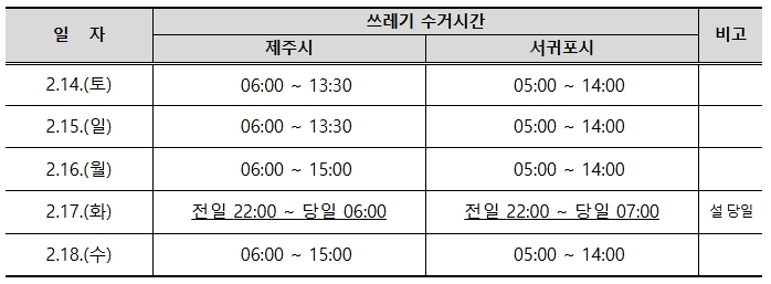 | ▲ 설 연휴 기간 쓰레기 수거시간 |