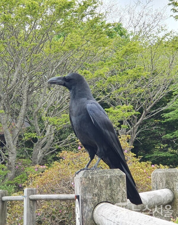 [뉴스서울] 한라산 진달래밭대피소의 큰 까마귀