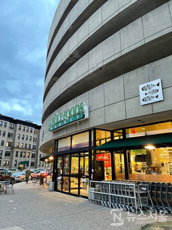 사진은 보스턴에 있는 홀 푸드 마켓 입구와 내부 모습이다.