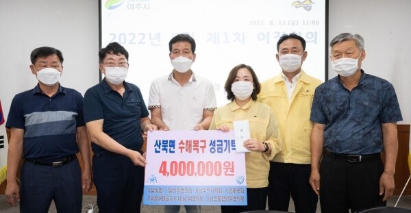 가남읍 6개 기관·단체는 집중 호우로 인해 피해를 입은 산북면에 수해복구 성금을 기탁하기로 결정하고 12일 산북면 행정복지센터를 방문해 자발적으로 모은 성금 400만원을 전달했다.