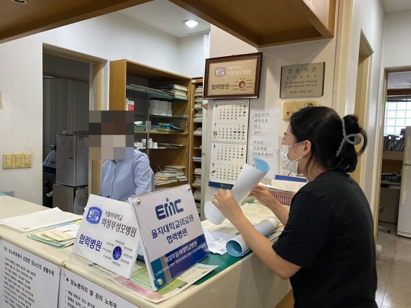 중앙동 맞춤형복지팀 실무자들은 관내 우림약국과 이종선 내과에 출장해 관계자와 사회복지 업무 협의를 진행하고 복지위기 의심가구 발굴에 필요한 포스터 부착과 접수 창구 내 전화번호 스티커 비치를 요청했다.