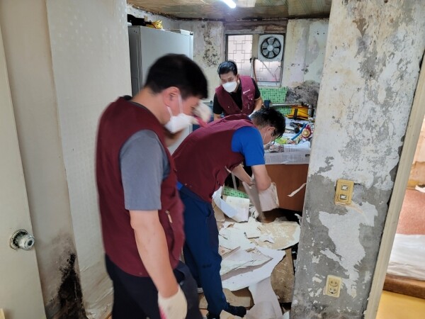 봉사를 실시한 어르신 집은 수도권 집중호우 시 하수구가 역류해 집 전체가 침수돼 벽지와 장판이 곰팡이로 얼룩지는 등 주거환경이 매우 열악한 상태였다.