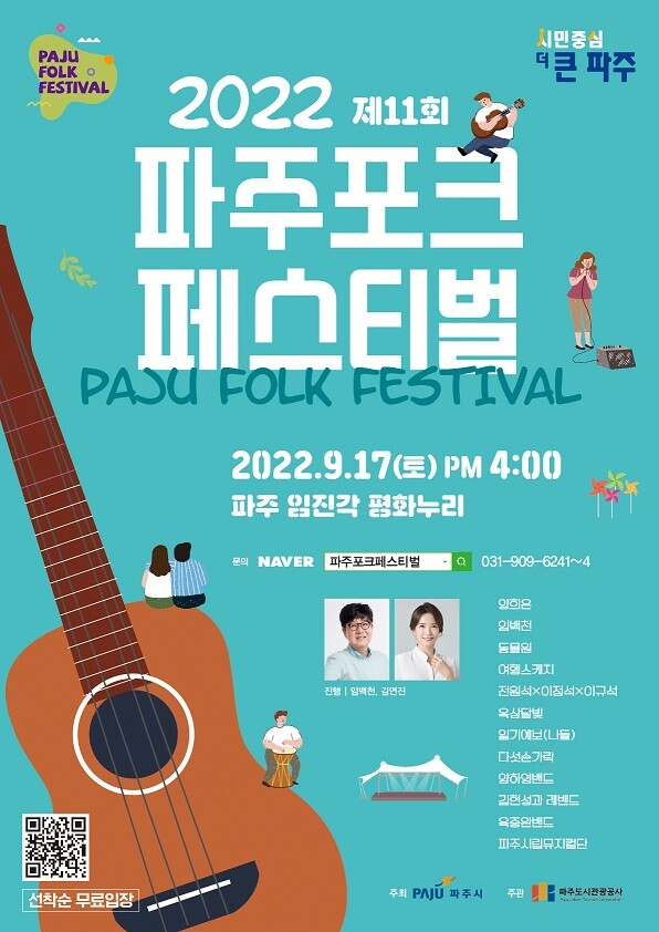 김경일 파주시장은 “코로나19의 장기화로 그동안 어려운 시기를 지나온 시민들이서정적인 포크의 선율과 함께 소풍 같은 축제를 즐기며 소중한 추억을 만들길 바란다”고 말했다.