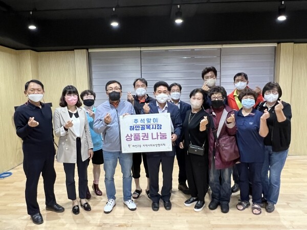 추석맞이 하안골목시장 상품권 지원은 하안2동 지역사회보장협의체에서 하안골목시장의 활성화와 어려운 이웃에게 따뜻한 추석이 되도록 매년 진행하고 있다.