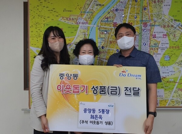 [뉴스서울] 동두천시 중앙동 최은옥 5통장은 추석을 맞아 지난 5일 관내 저소득 취약계층을 위해 사용해 달라며 이웃돕기 성품을 기부했다.