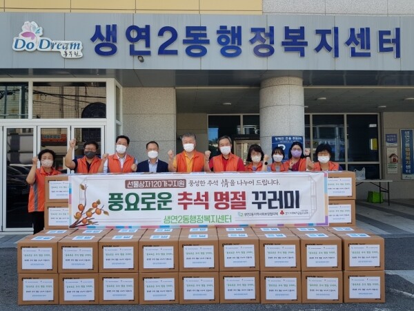 ‘풍요로운 명절 꾸러미’사업은 사회복지공동모금회 성금 중 이웃愛 희망나눔 사업 신청을 통해 마련된 사업비로 다양한 식료품이 담긴 꾸러미를 만들어 이웃에게 전달하는 생연2동 지역사회보장협의체 특화사업이다.