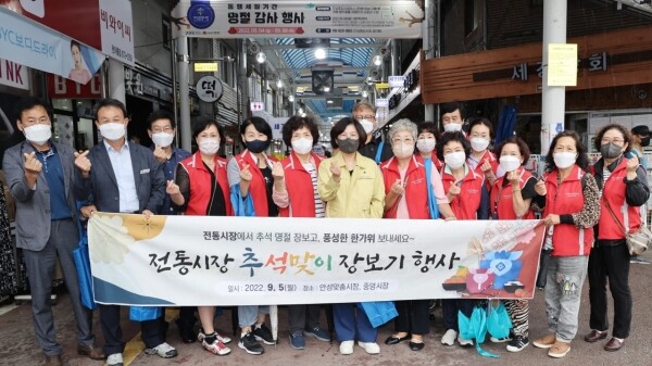 이번 장보기 행사에는 김보라 안성시장을 비롯해 시 공직자와 소비자교육중앙회안성시지회 회원 등 20여명이 참석해 중앙시장과 안성맞춤시장을 돌며 추석 제수용품 및 식재료 등을 구매했으며 이와 함께 고물가와 매출 감소로 어려움을 겪고 있는 상인들의 애로사항을 청취하기도 했다.